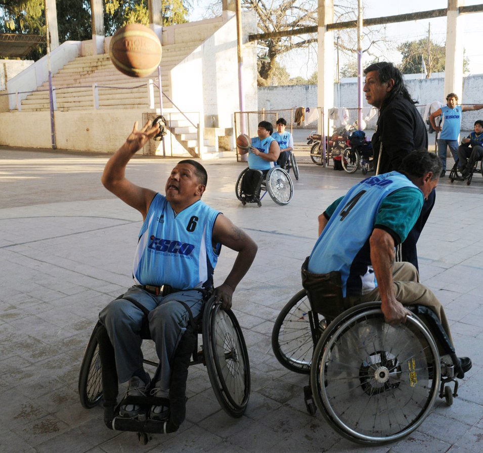 Verlos entrenar es impactante. Manejan la silla de ruedas con mucha agilidad. Su rumbo en la cancha de básquet tiene como único destino el aro. Avanzan, frenan, giran y ganan la pelota. Prueban al aro y pierden. La secuencia se repite. Avance furioso, frenada para pensar, giro para despistar. Una y otra vez las escenas se recrean sobre los zócalos opacados por el polvo y el hollín del club de San Cayetano y del Complejo Ledesma.